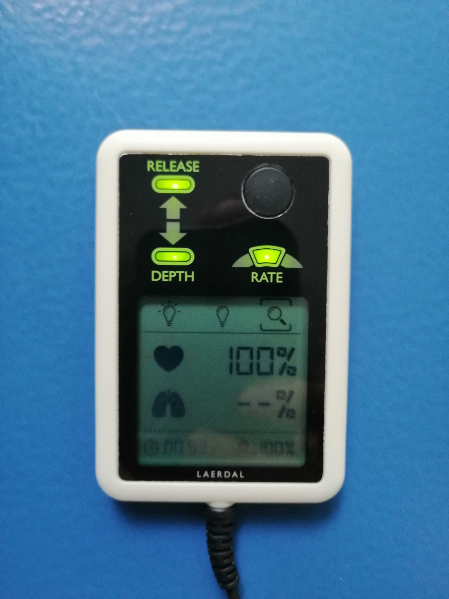 - Le SST récupère lui-même le DAE s'il est à proximité, facilement accessible et qu'il peut se le procurer immédiatement sans quitter la victime plus de 10 secondes. (Dans le cas contraire, le SST pratique la RCP jusqu'à ce qu'on lui apporte un DAE). Il le met en œuvre immédiatement en suivant les indications vocales et en interrompant le moins possible les compressions thoraciques.